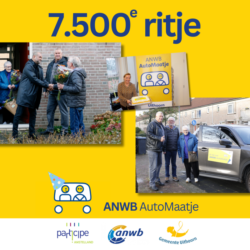 Vorige week reed vrijwillige chauffeur Ron het 7500e (!) ritje van ANWB AutoMaatje Uithoorn. Ter gelegenheid van deze mijlpaal vierden we een feestje met de vrijwilligers in Wijkcentrum Bilderdijkhof.
